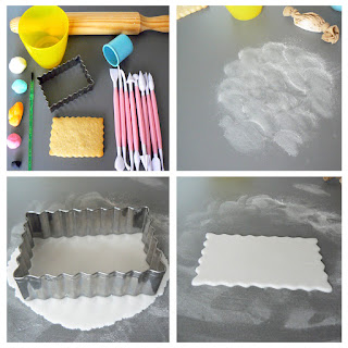 Nota: Antes de usar el sello, espolvorear harina en su superficie antes de sellar cada una de las galletas.